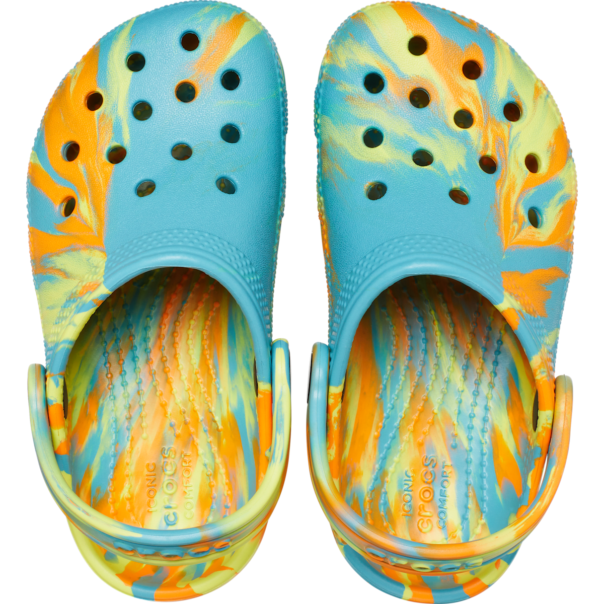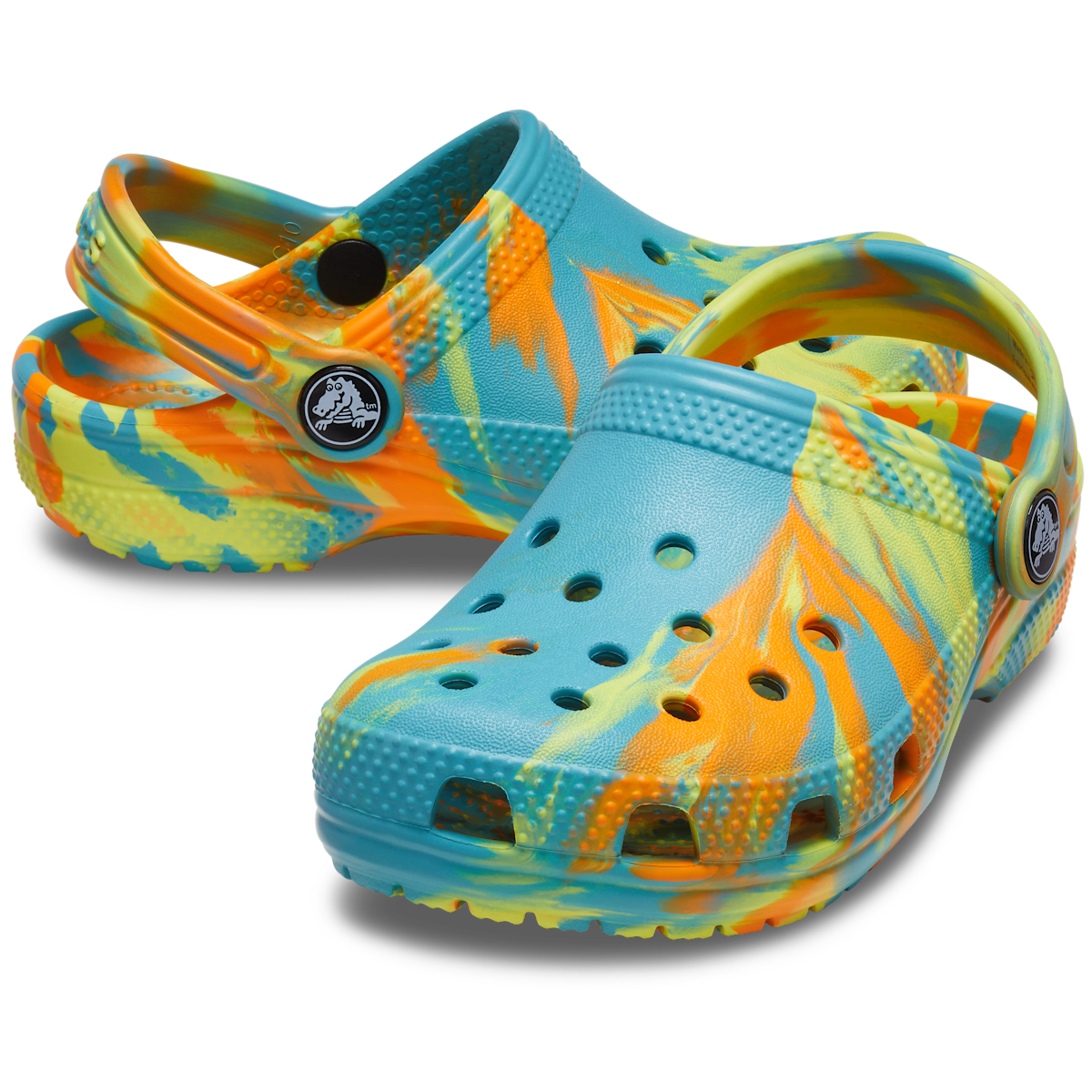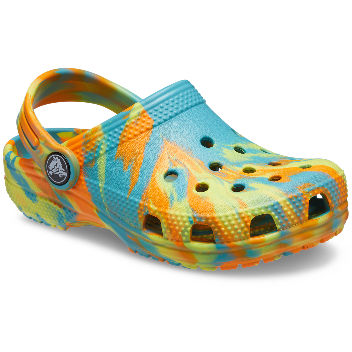 All-new marbled effects refresh the iconic clog that started a comfort revolution around the world, charmed kids everywhere and made parents fall in love with their easy-to-wear, easy-to-clean design! Our new marbled Crosliteâ„¢ foam creates a colorful effect that is completely unique. While all marbled shoes have the same wavy look, no two shoes are exactly alike. Crocs Classic Clogs feature lightweight Iconic Crocs Comfortâ„¢ and a color for every personality, and remind kids of all ages to go out and play.