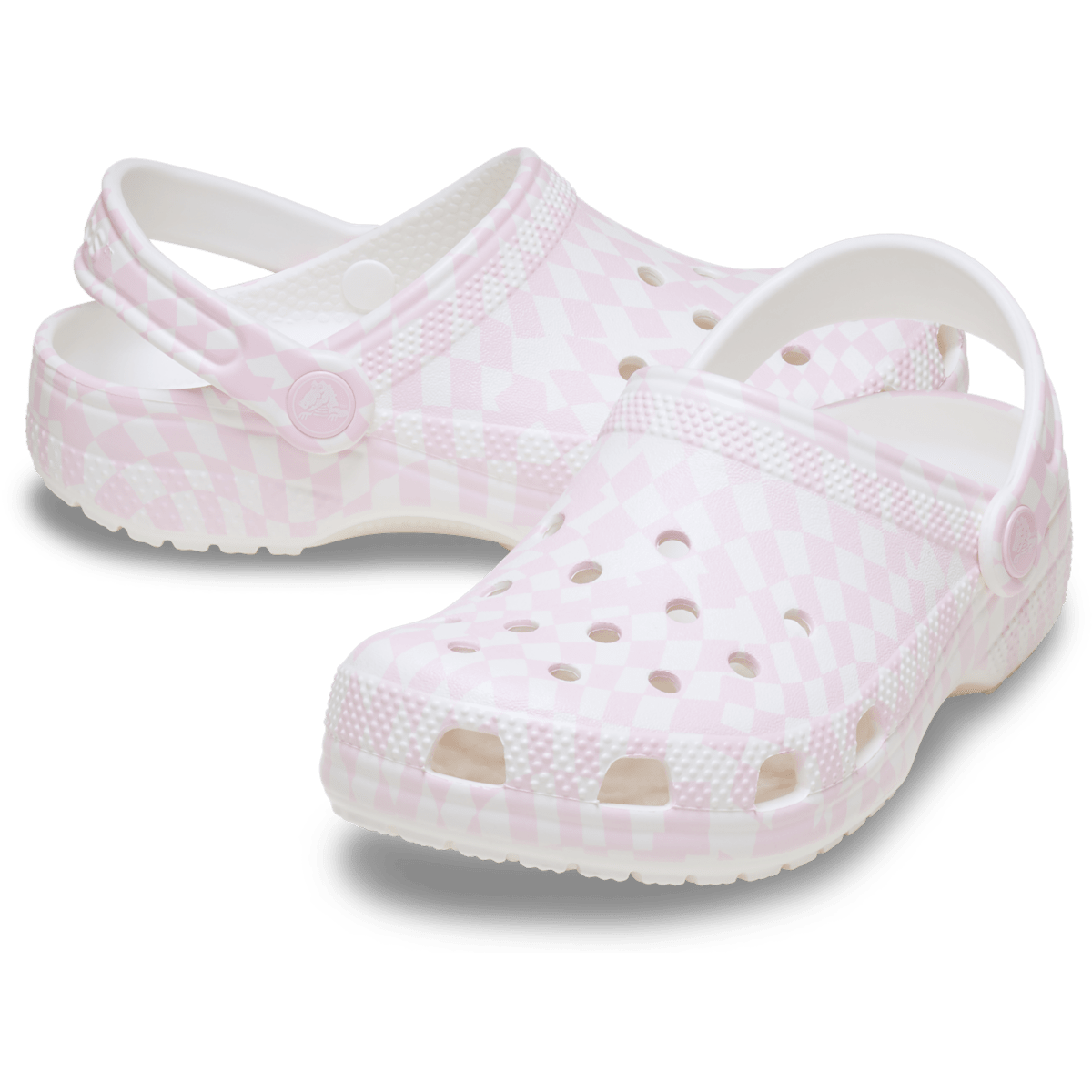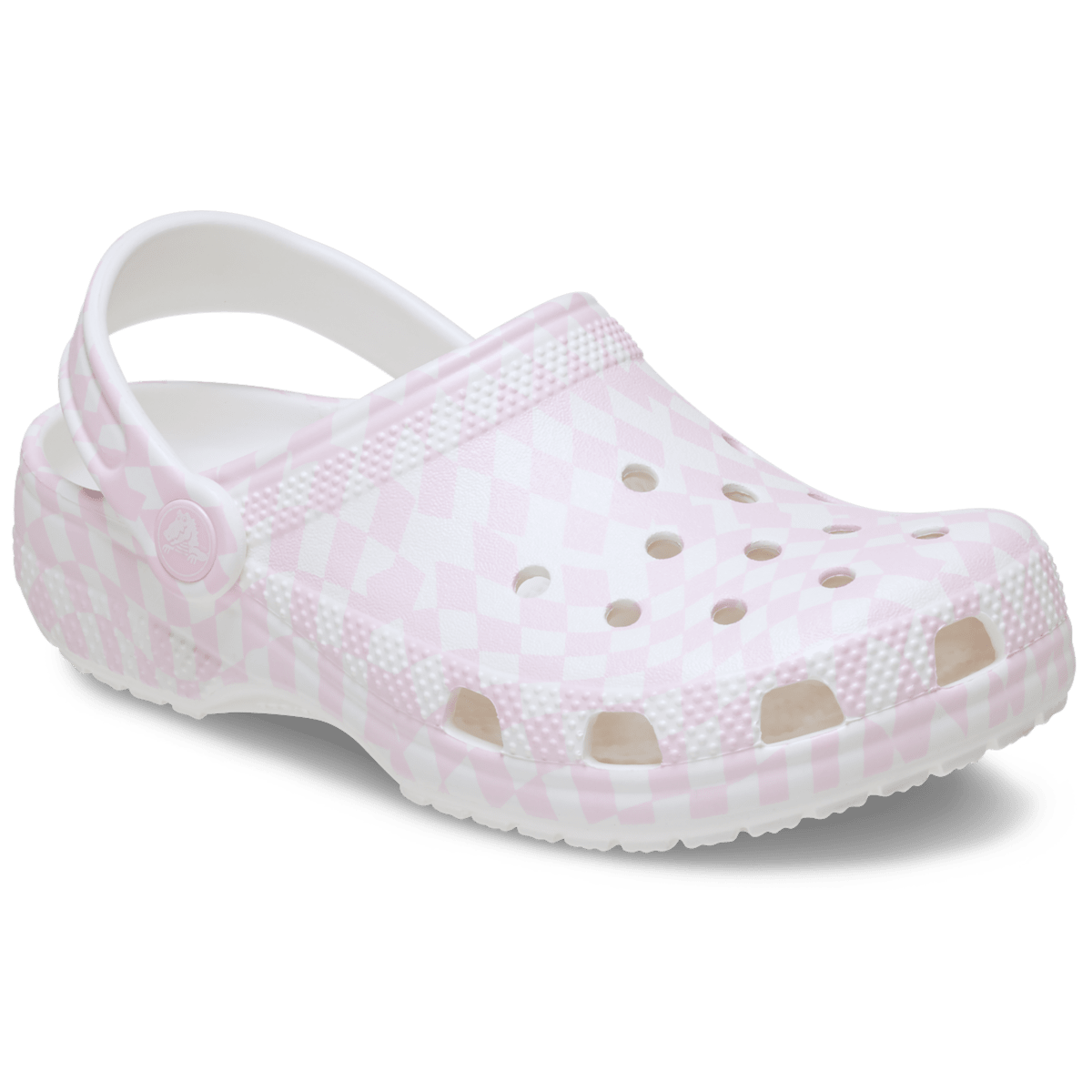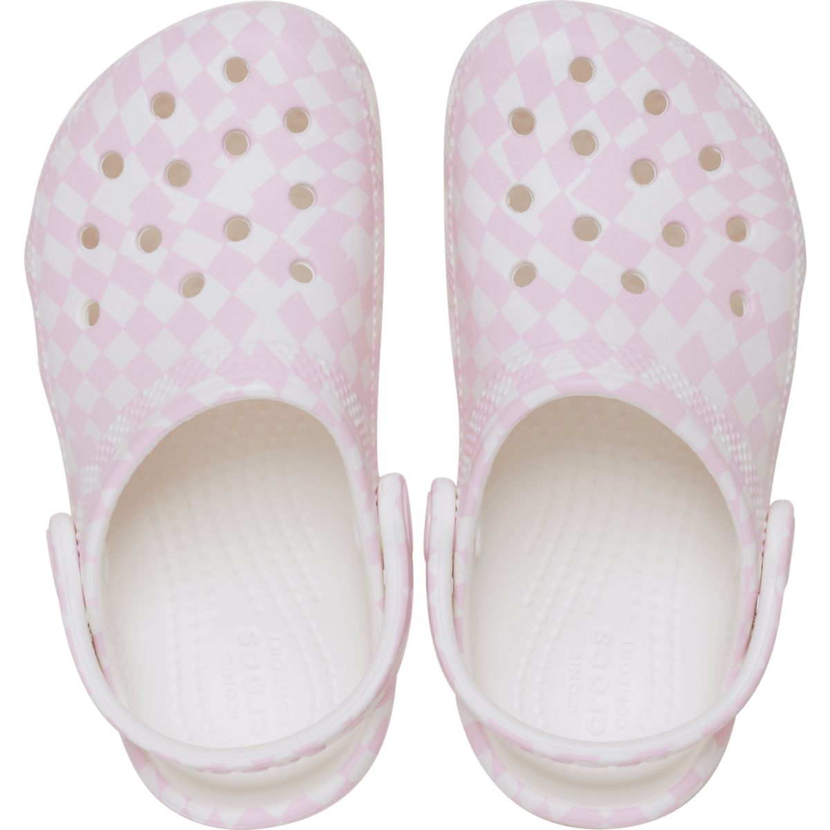 A warped black and white checked print provides extra style to this version of the iconic clog. The unique print helps little ones show off their creative spirit, and Crosliteâ„¢ foam construction keeps them light and easy to wear. Also available for adults, kids and littles, so you can get matching pairs for a fun full family moment. Grounded in comfort, spiked with personality.