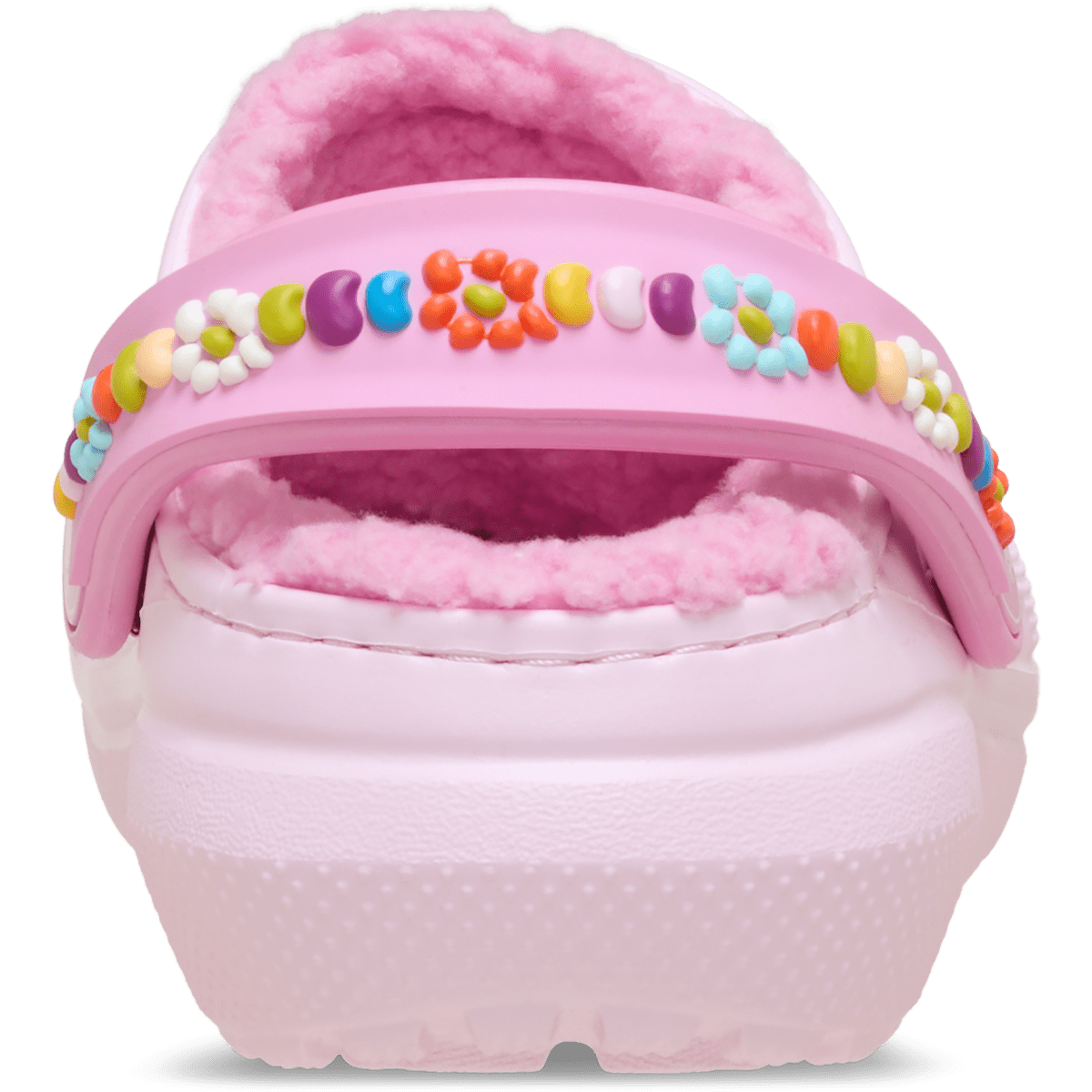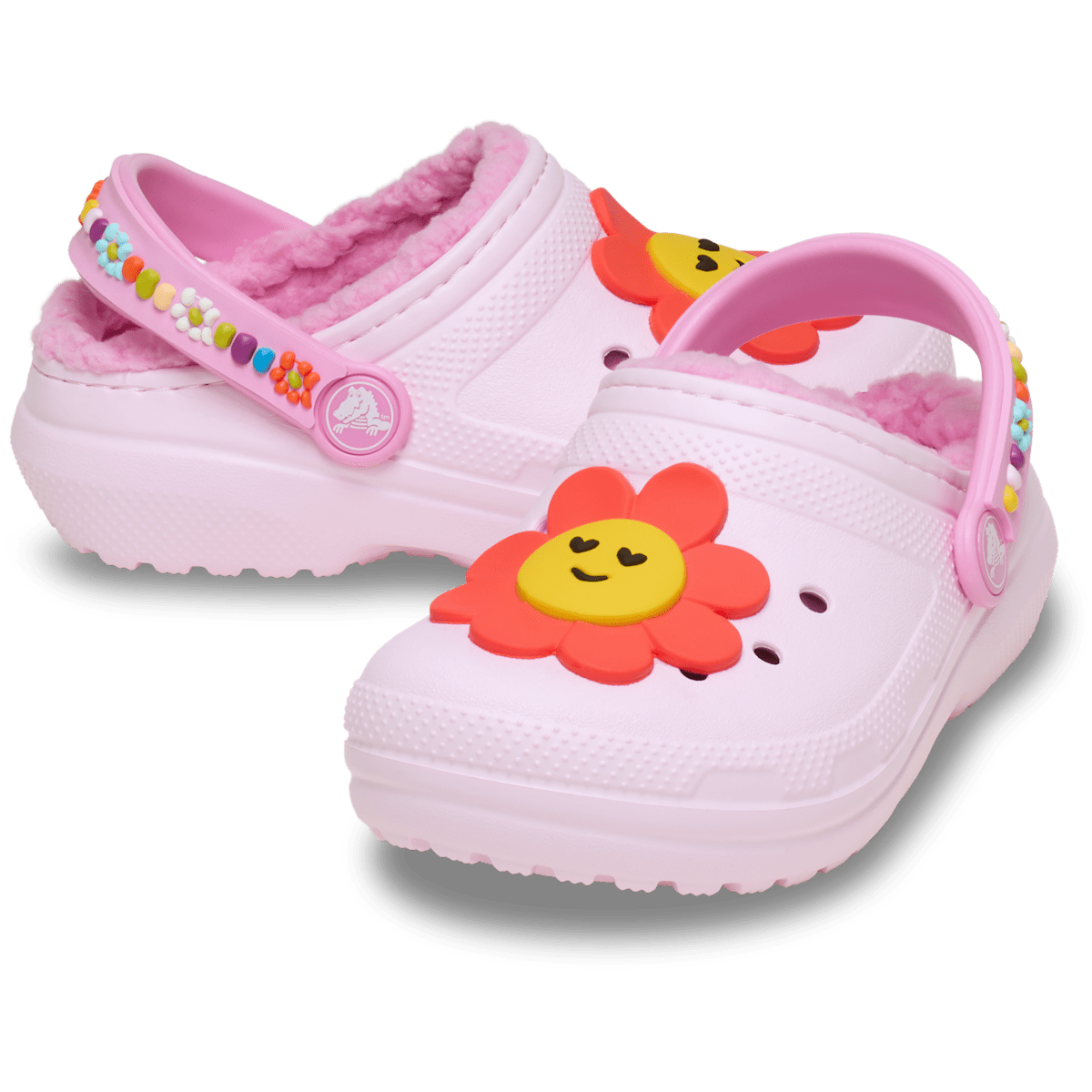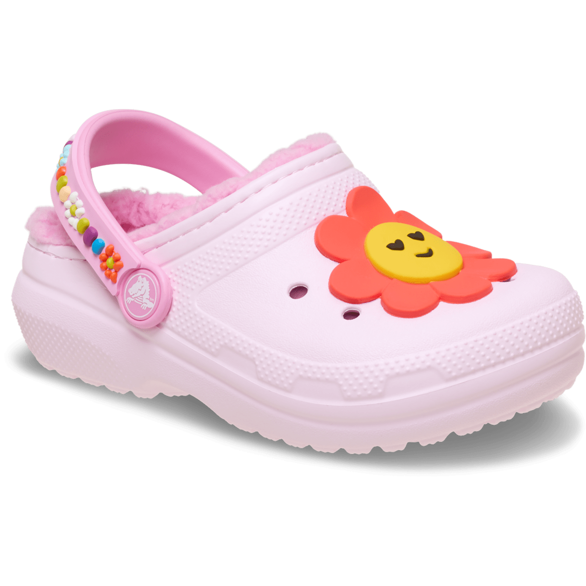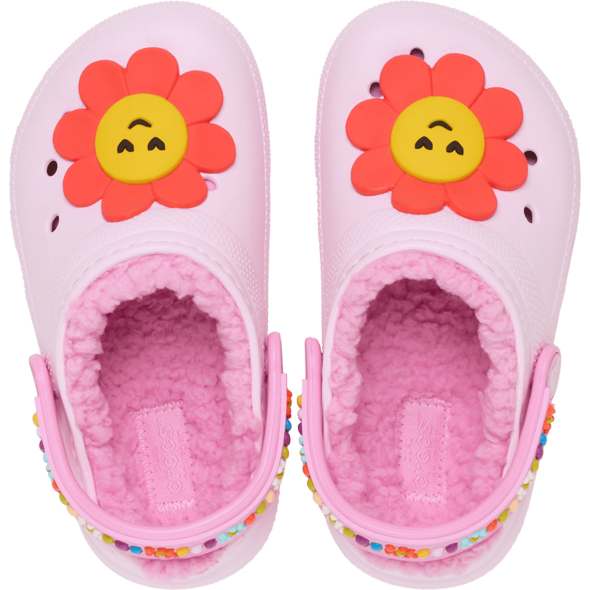 This version of the iconic clog features an oversized smiling daisy embellishment on the upper, plus a friendship bracelet embellishment on the heel strap. The warm, fuzzy liner adds to the cushion and comfort, and Crosliteâ„¢ foam construction keeps them light and easy to wear. Crocs offers a variety of Classic Clogs for Kids and Toddlers that feature inspired designs to help kids express themselves and engage new friends, resulting in more fun.