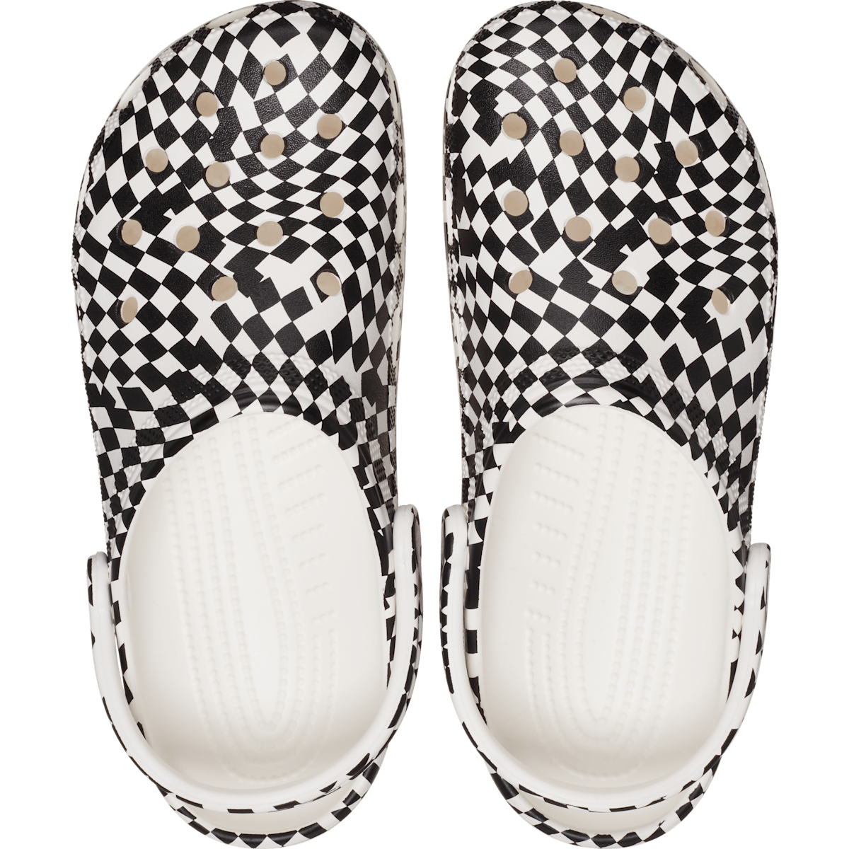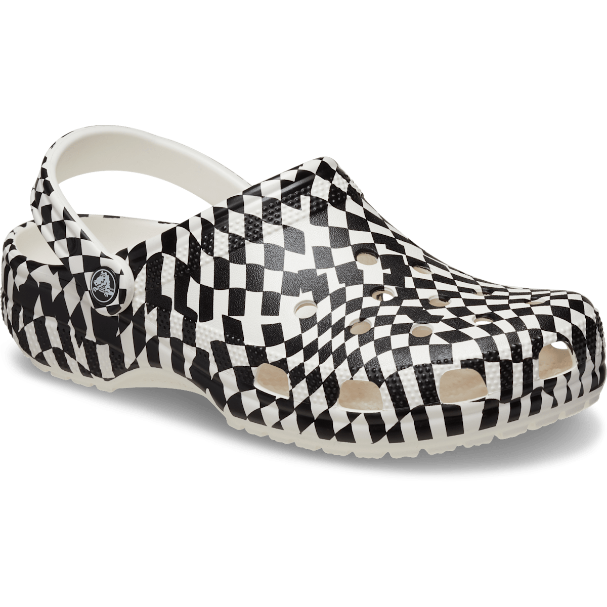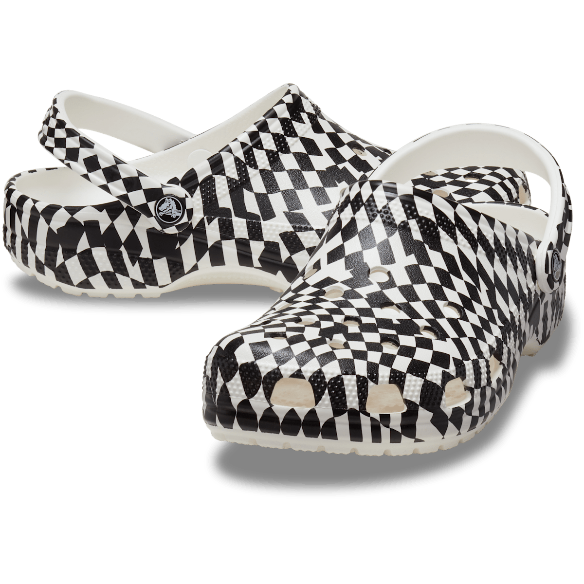 A warped black and white checked print provides extra style to this version of the iconic clog. The unique print helps you show off your creative spirit, and Crosliteâ„¢ foam construction keeps them light and easy to wear. Also available for kids, so you can get matching pairs for a fun full family moment. Grounded in comfort, spiked with personality.