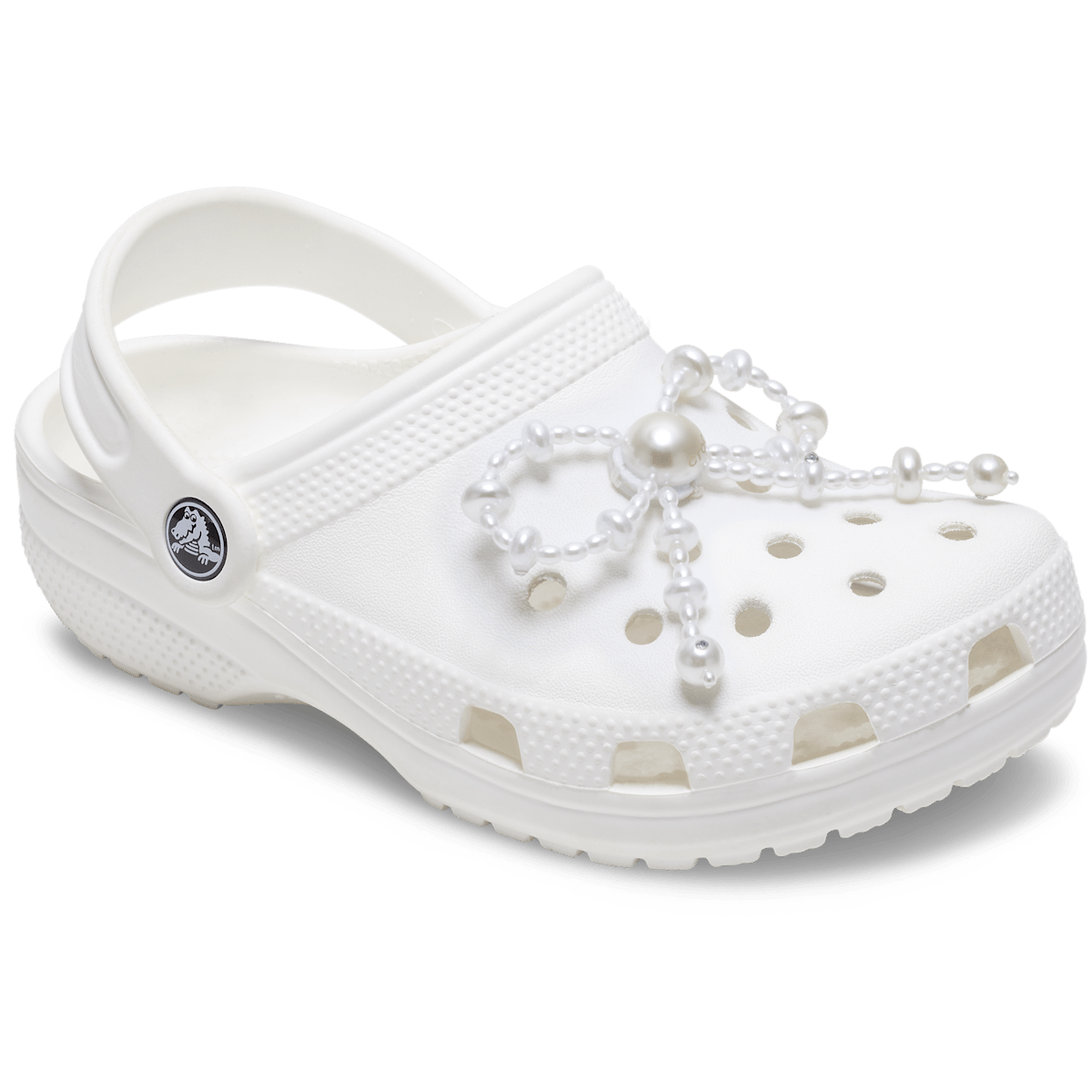 Pop some personality into your shoes with this White Large Pearl Beaded Bow Jibbitzâ„¢ charm. It’s the perfect addition to your favorite pairs of clogs, slides, and more.