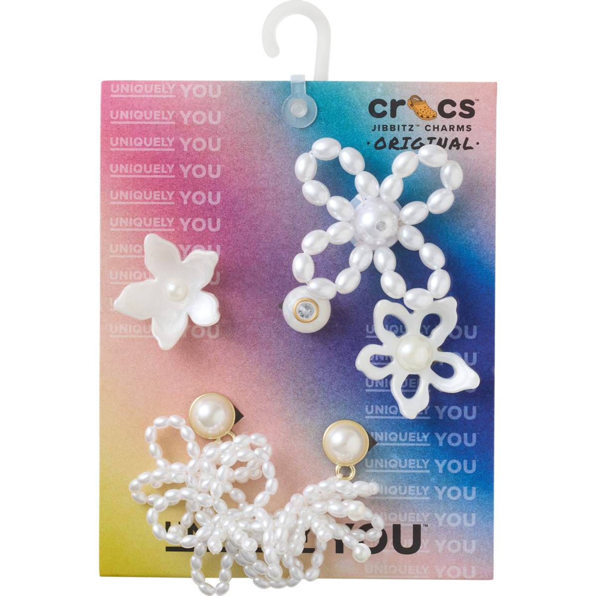 Pop some personality into your shoes with these White Pearl Beaded 5 Pack Jibbitz™ charms. They’re the perfect addition to your favorite pairs of clogs, slides, and more.