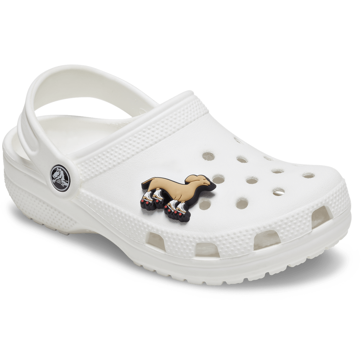 Pop some personality into your shoes with this Wiener On Wheels Jibbitzâ„¢ charm. It’s the perfect addition to your favorite pairs of clogs, slides, and more.