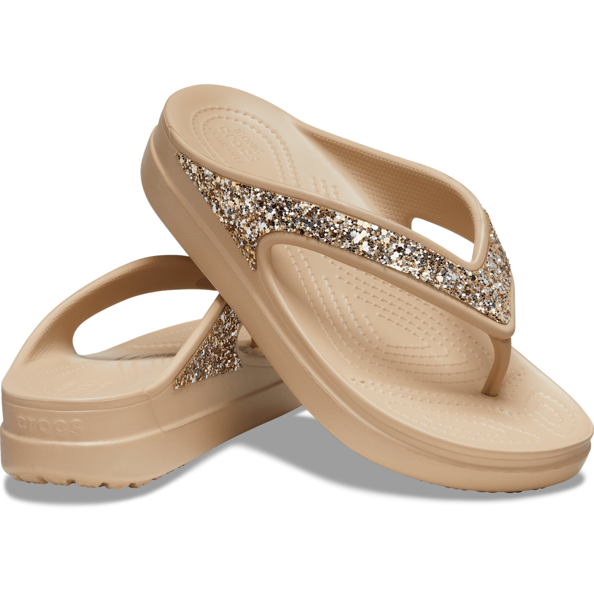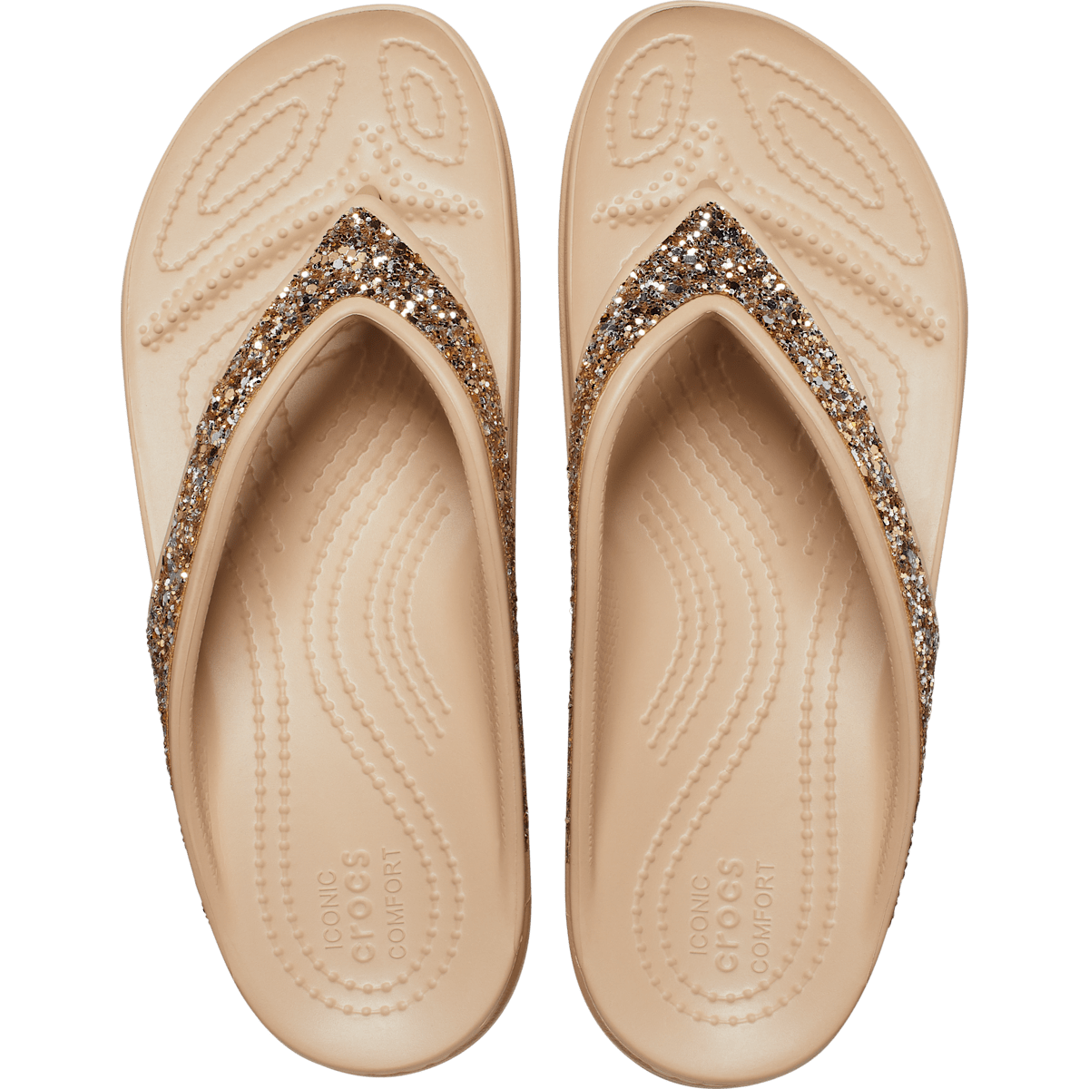 Women's Crocs Sloane Glitter Wedge Flip - Chai / GoldWomen’s Crocs Sloane Glitter Wedge Flip – Chai / Gold